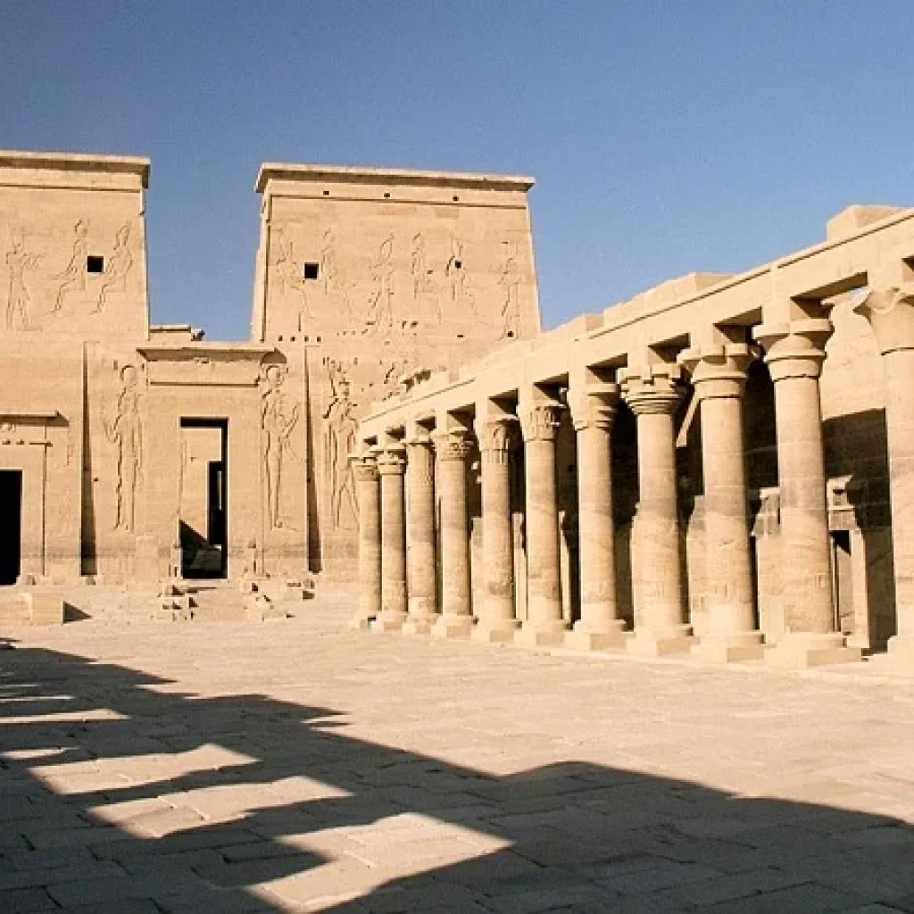 Construido en honor a la diosa Isis, este fue el último templo construido en el estilo egipcio clásico. La construcción comenzó alrededor del 690 a. C. y fue uno de los últimos puestos para rendir culto a la diosa. El culto a Isis continuó aquí hasta al menos el año 550 d.C. El barco te deja cerca del Quiosco de Nectanebo, la parte más antigua, y la entrada al templo está marcada por el primer pilono de 18 m de altura con relieves de Ptolomeo XII Neos Dionysos golpeando enemigos.