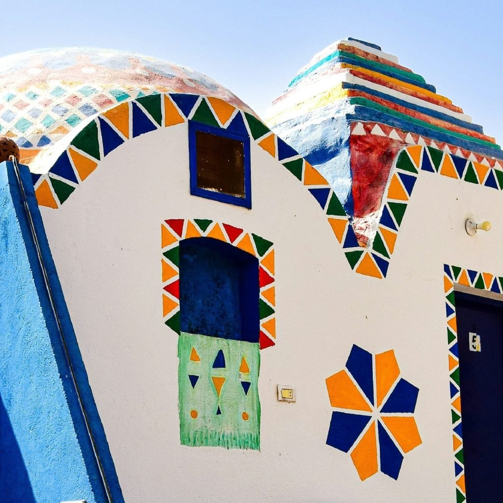 Les Nubiens sont connus pour leur accueil chaleureux. Vous serez souvent accueilli avec un sourire et des gestes amicaux. N’hésitez pas à engager la conversation et à poser des questions sur leur mode de vie.Les maisons nubiennes sont généralement peintes dans des couleurs vives, souvent avec des motifs géométriques. Promenez-vous dans les rues pour admirer ces façades uniques.